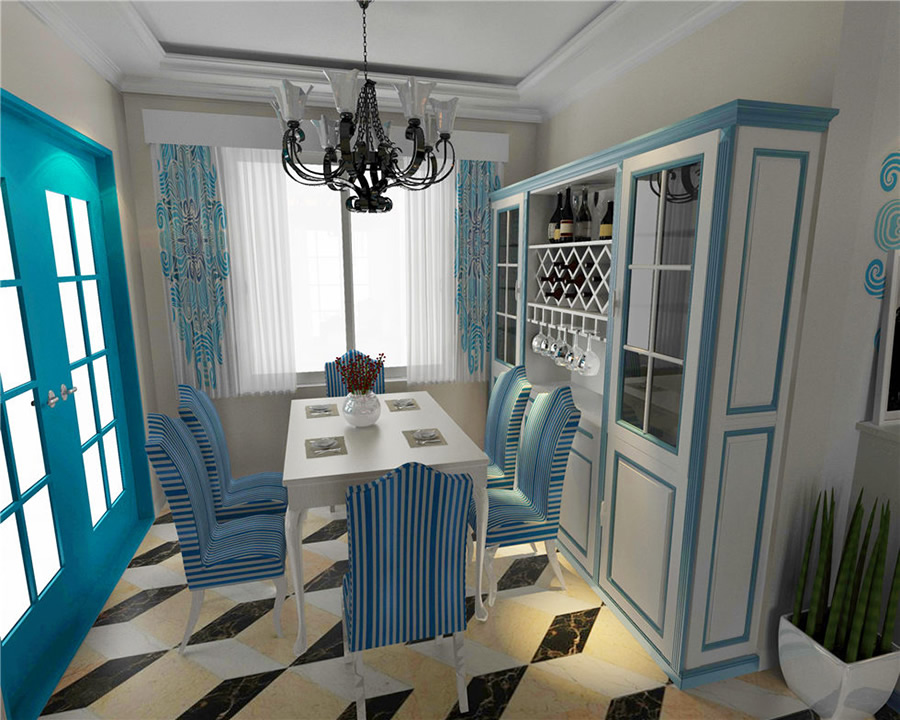 清新靚麗的色彩,讓人眼前一亮,拼接圖形 的大面積使用,讓整體氛圍更加富有神秘感,尤其是背景墻與窗簾布藝的使用,更加的凸顯文藝范,純白色的花瓶中的小花,讓整體視覺(jué)更加的溫馨與舒適。