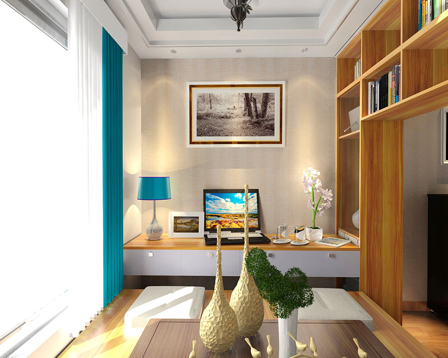 轉角式書(shū)柜造型,在擴大收納面積的同時(shí),也為格局增添了一種神秘感。整體布局采用原木色系,營(yíng)造出一種質(zhì)樸的整體氛圍,讓您更好地回歸自然。